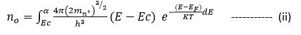So that the thermal equilibrium electron concentration in the conduction band can be written as,